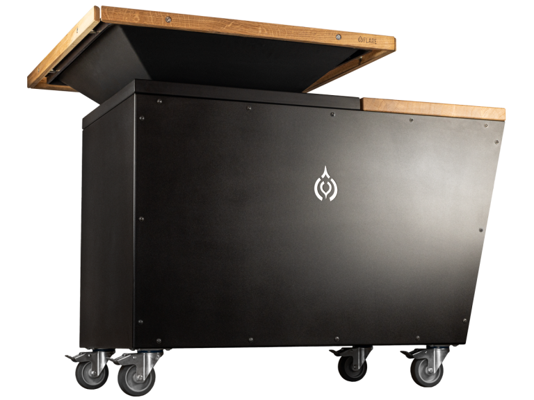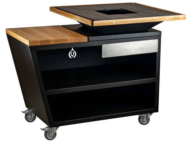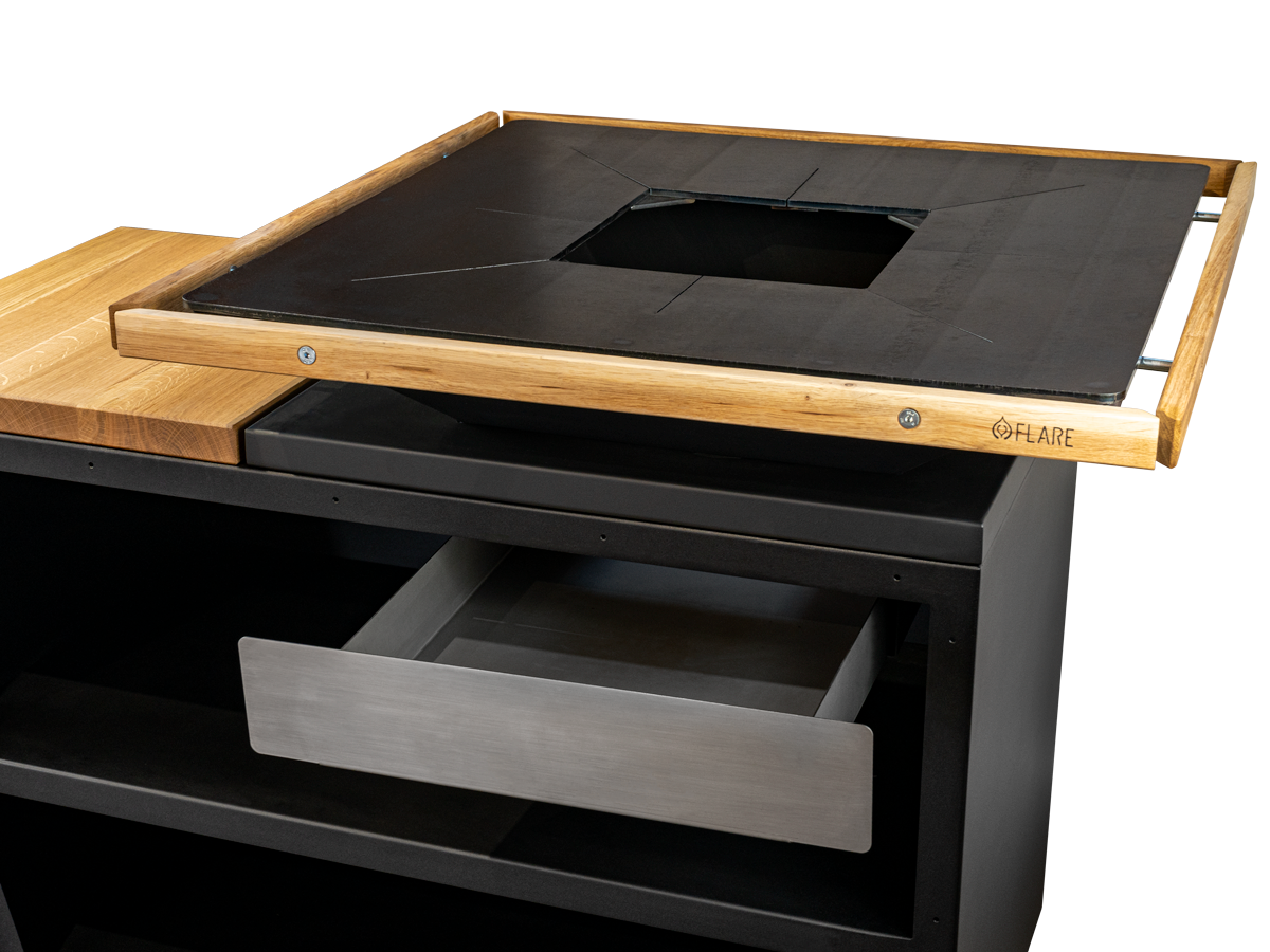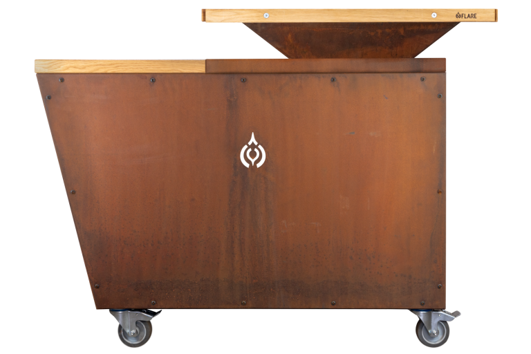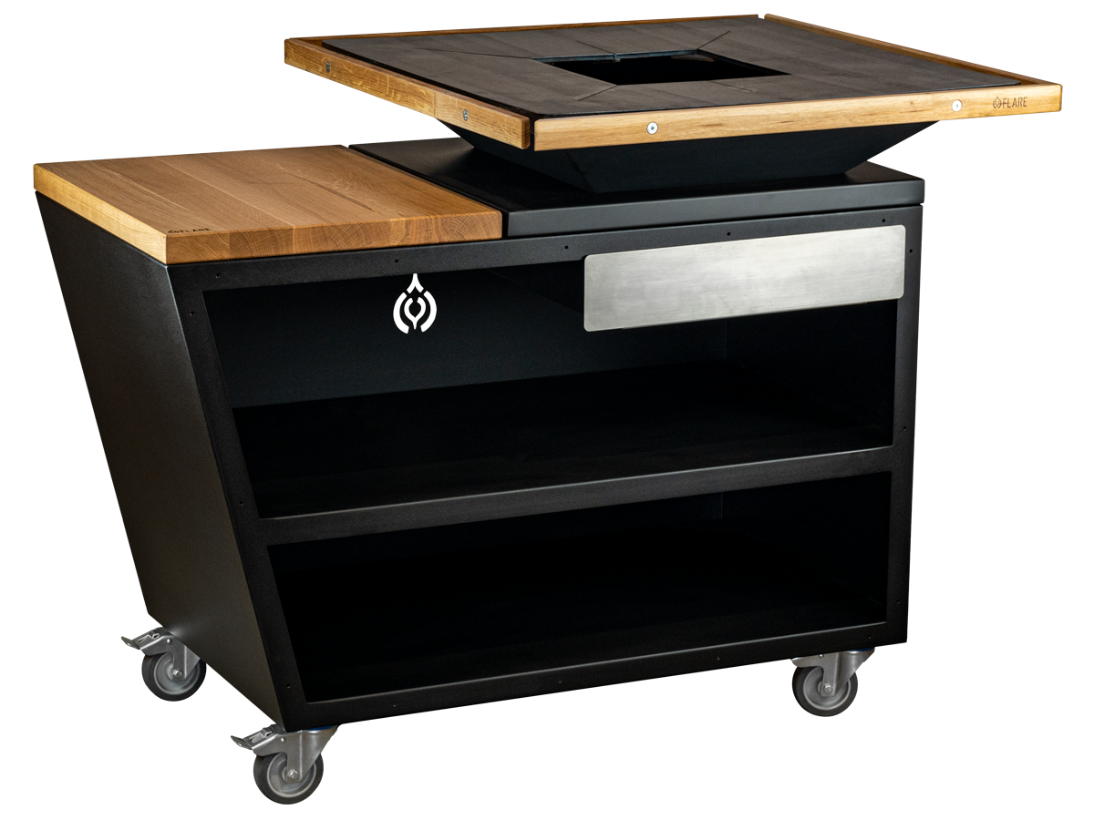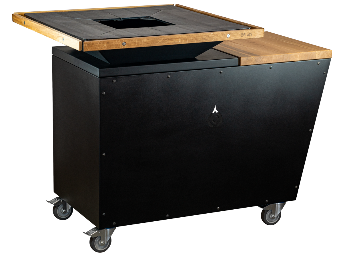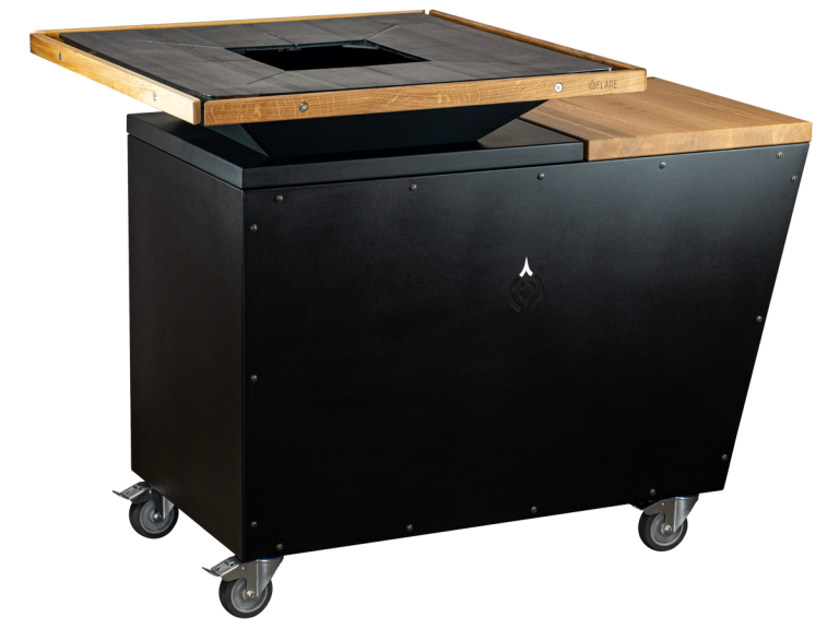 Optimaler Begleiter für jeden FLARE Grill: Der FLARE „sideblock“. Mit 2 Innenablagefächern für Holz und Grillzubehör. Müheloses Umstellen dank 4 hochwertiger Lenkrollen. Das modulare Konzept erlaubt beidseitige Montage des Frontpaneels für individuellen, gespiegelten Aufbau.