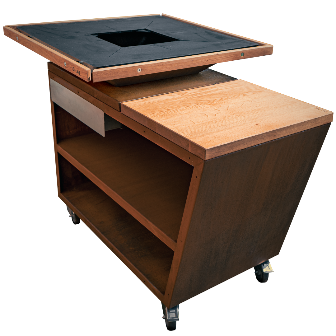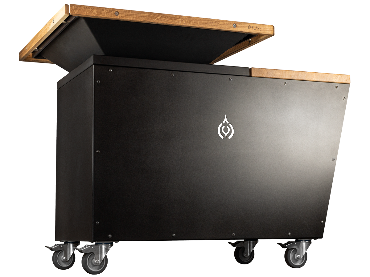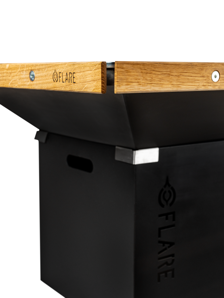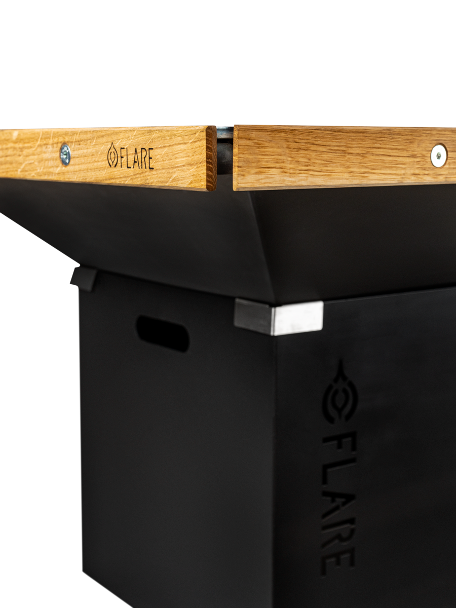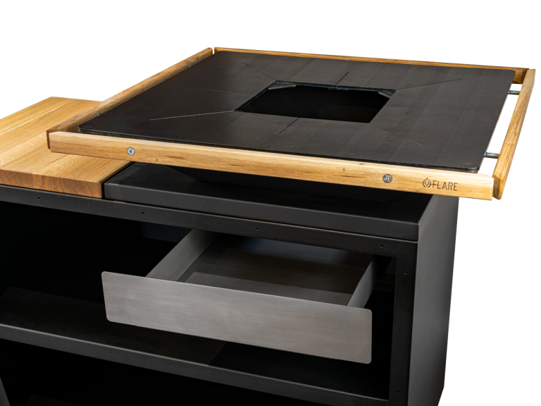 Optimaler Begleiter für jeden FLARE Grill: Der FLARE „sideblock“. Mit 2 Innenablagefächern für Holz und Grillzubehör. Müheloses Umstellen dank 4 hochwertiger Lenkrollen. Das modulare Konzept erlaubt beidseitige Montage des Frontpaneels für individuellen, gespiegelten Aufbau.