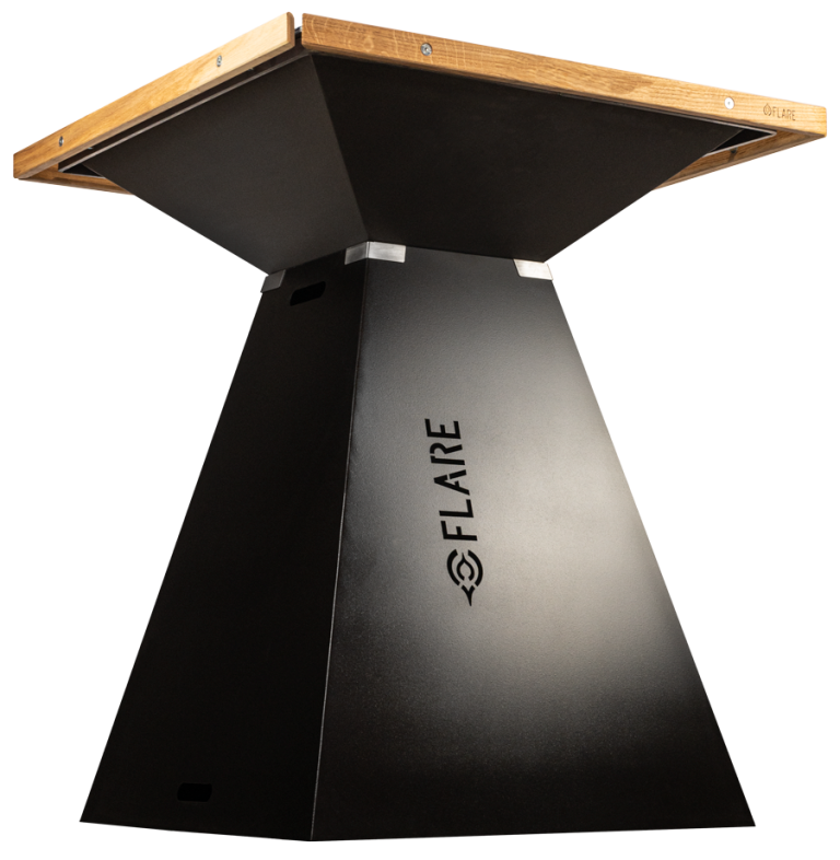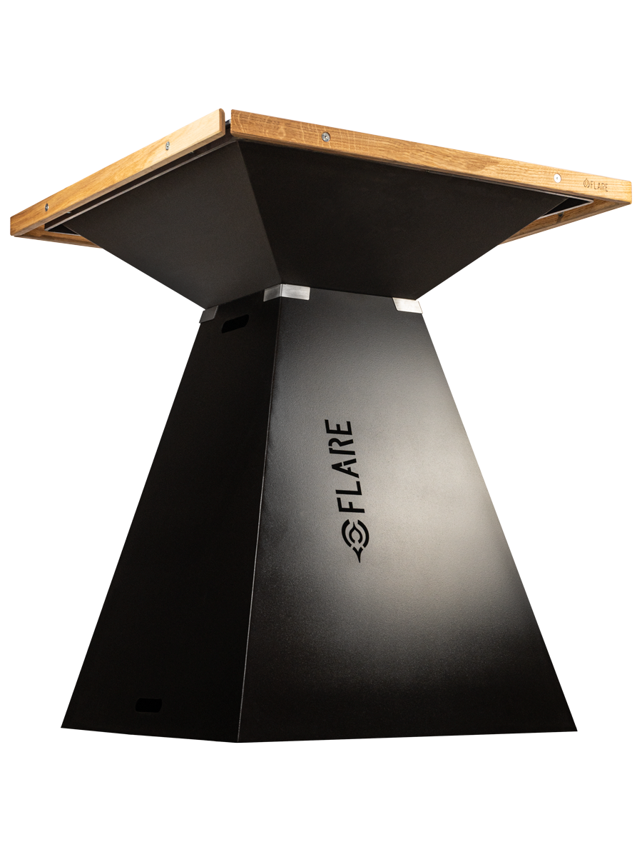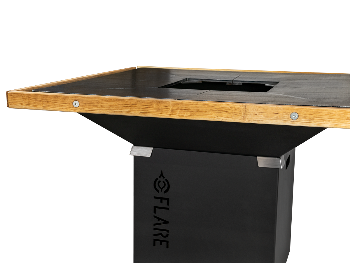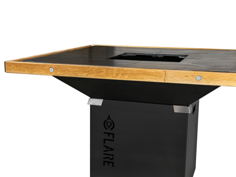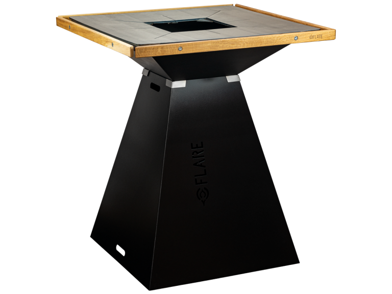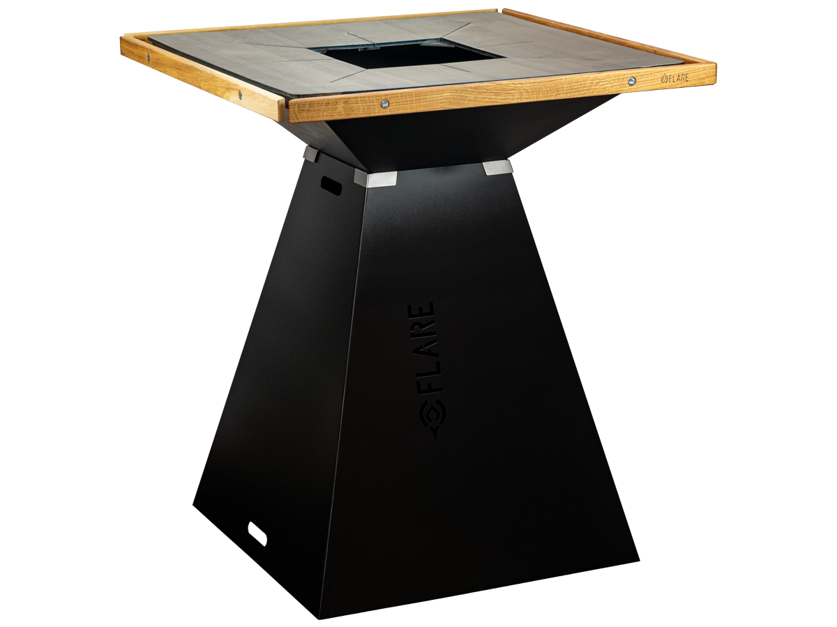 Quadratische Feuerplatte (80×80 cm) aus hochwertigem Stahl für beeindruckendes Grillen. Dank intelligentem modularem Stecksystem vielfältige Varianten möglich. Der Sockel des FLARE Grills „original“ ist umkehrbar, ermöglicht bequeme Arbeitshöhe von 80 cm oder 100 cm. Flexibles und komfortables Grillen. Die schwarze Version besticht mit schwarz lackiertem Sockel und hitzebeständig beschichteter Feuerschale – edler Look und Schutz vor Wind und Wetter kombiniert.