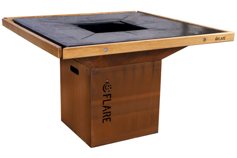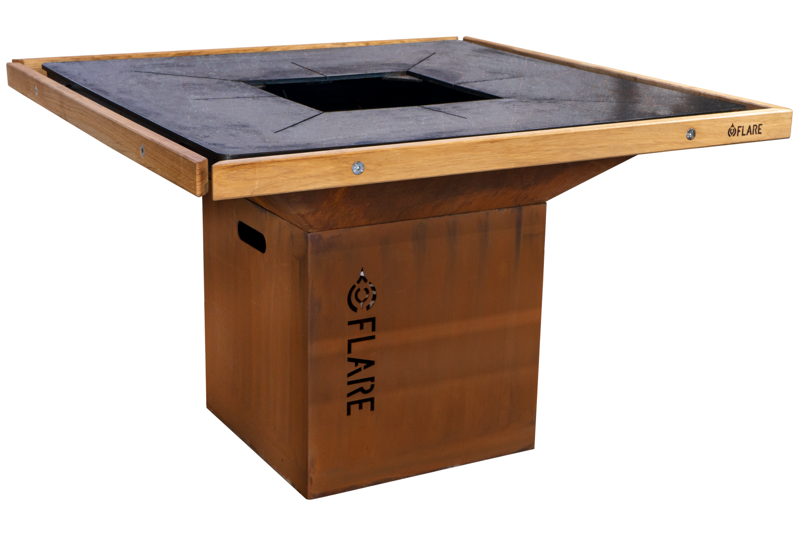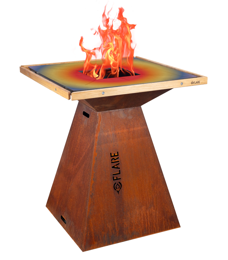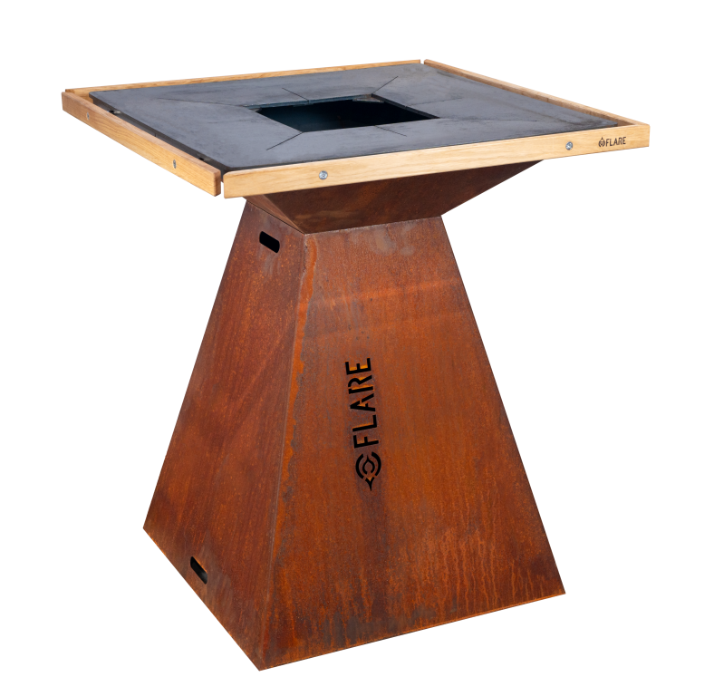 Die quadratische Spannungsarmgeglühte Feuerplatte der FLARE 80 Serie ist aus hochwertigem Cortenstahl gefertigt und bietet mit ihren Maßen von 80 x 80 cm ein beeindruckendes Grillerlebnis. Diese innovative Feuerplatte ermöglicht nicht nur gemeinsames Grillen, sondern durch zusätzliche Temperaturzonen in den Ecken eröffnen sich vielfältige Garmöglichkeiten.
