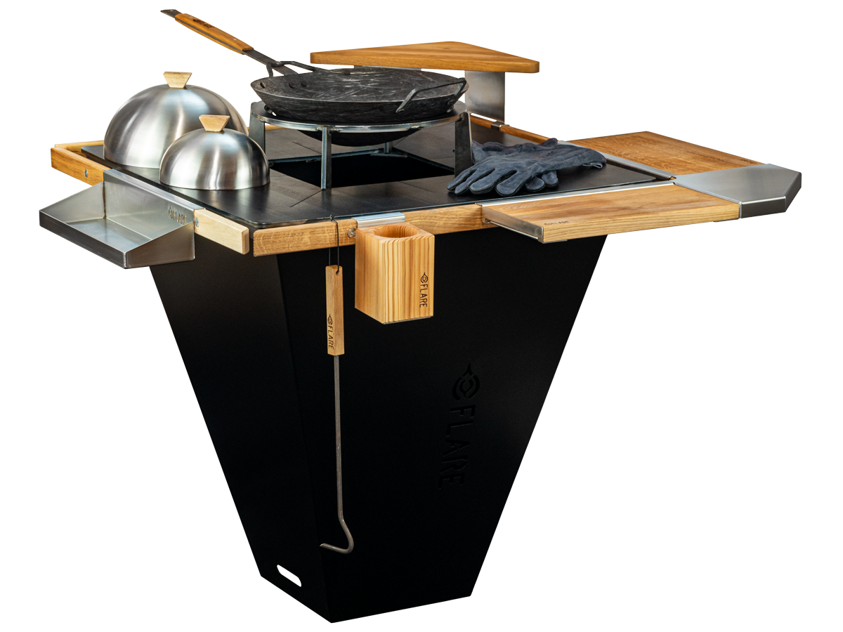 Die quadratische FLARE 80 Feuerplatte aus hochwertigem Stahl (80 x 80 cm) bietet ein beeindruckendes Grillerlebnis mit vielfältigen Garmöglichkeiten. Das modulare Stecksystem ermöglicht einfache Anpassungen, einschließlich der bequemen Arbeitshöhe von 82 cm oder 100 cm durch einfaches Umdrehen des Sockels. Entdecke mit der FLARE 80 Serie eine neue Dimension des Grillens, wo Funktionalität und Design perfekt verschmelzen.